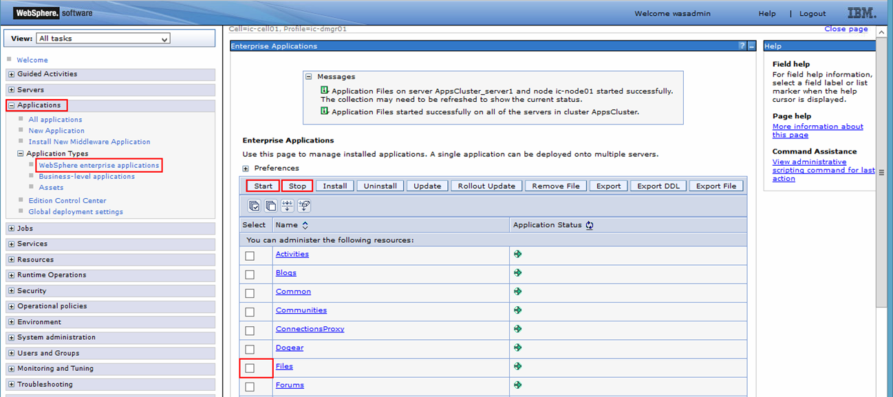 Note: If you make any changes to the role, WebSphere will automaticaly restart the Files Application and you do not need to restart it manually.