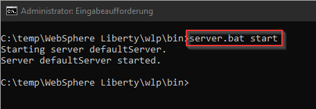 Afterwards, just start the WAS Liberty by executing the “server.bat” script.
