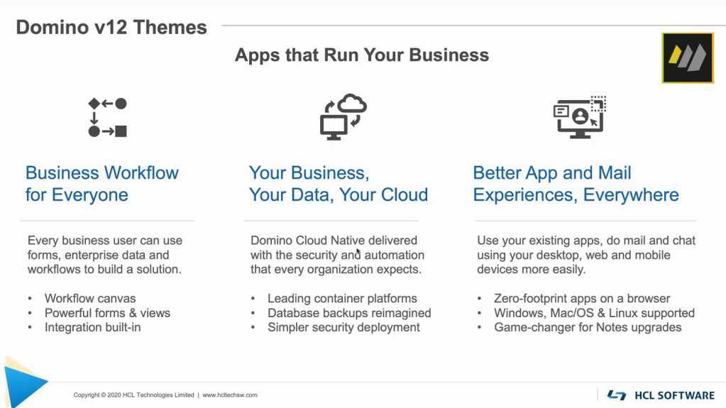 During the first day of the virtual HCL Factory Tour we were able to see the roadmap for Domino, Designer and Notes v12. HCL continues to innovate and sets the bar high in regard to product quality. The new release of Domino, version 12, is coming in Q2 of 2021.