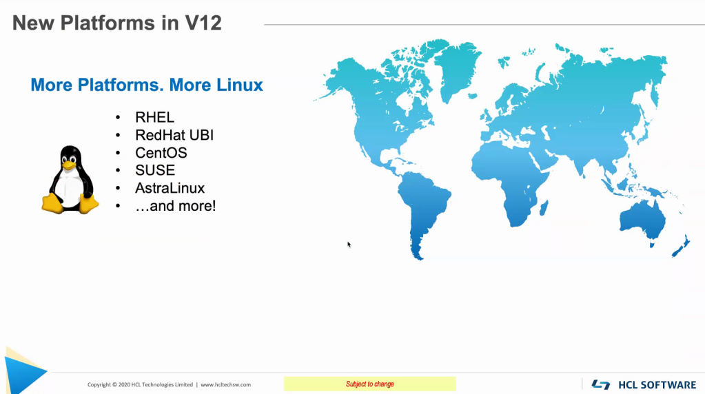 The version 12 of Domino will be supported on more Linux platforms than the previous release.