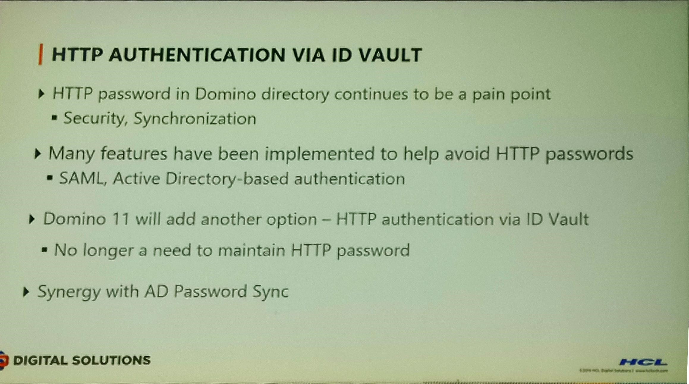 With version 11 we will have a possibility to implement “Two tiered DAOS”. We may also get Active Directory and Domino Directory Synchronization as well as “HTTP Authentication via ID Vault”.