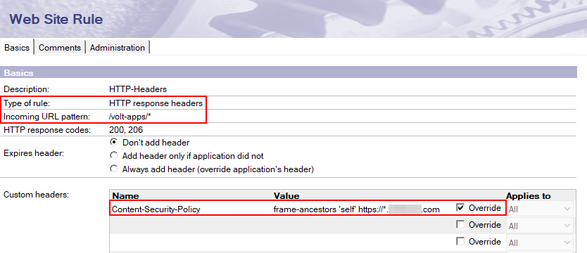 Setting Value: frame-ancestors 'self' https://*.domain.com