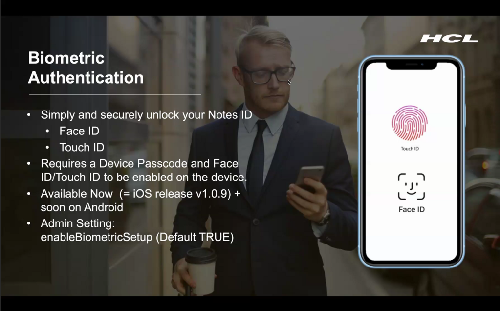 This brings us to other cool features which will come with HCL Domino v12, FaceID and other biometric means of authentication will be supported in HCL Nomad mobile client.