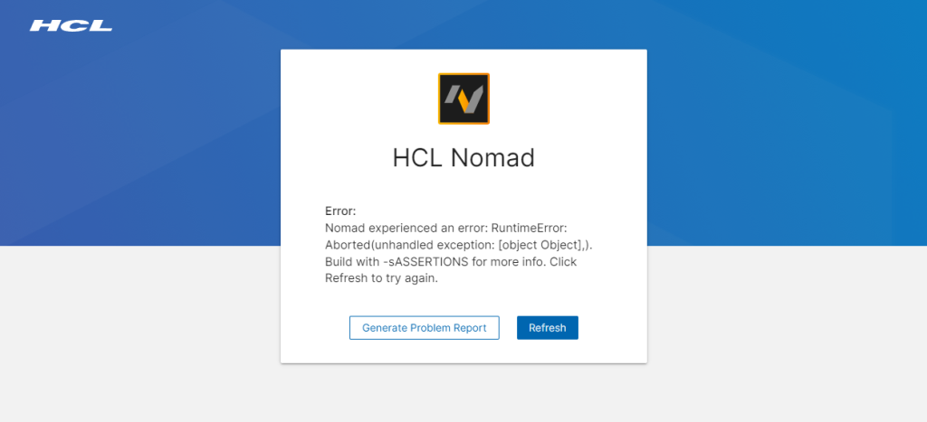 If you are using HCL Nomad for Web Browsers on Chrome or Edge browsers version 130 and higher, you will encounter the following error message during the setup phase of the HCL Nomad for Web Browsers client: