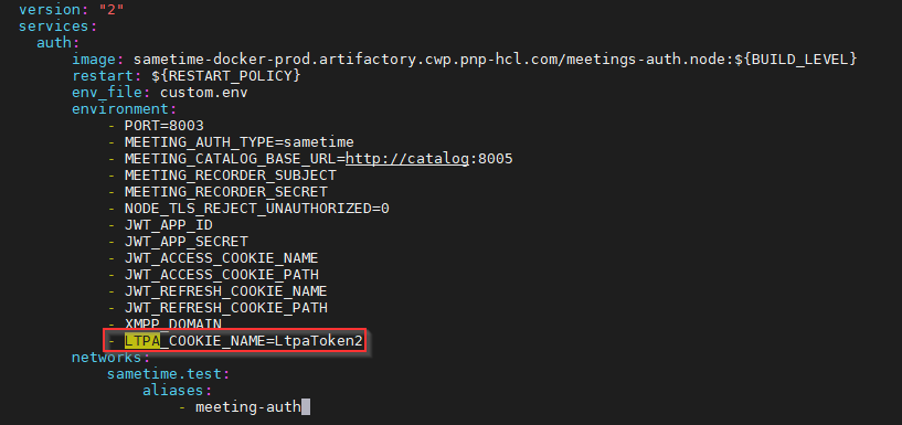 After a brief call with a good friend of mine, Herwig Schauer from HCL, I got the information that you need to set the LTPA Cookie name to “LtpaToken2”, which is the default name for LTPA v2 Token, on the Sametime Meetings server. For Sametime Meetings Docker deployment, this can be done in “docker-compose.yml” file. You have to add the “LTPA_COOKIE_NAME” parameter, in the “auth” section of the file, and set it to “LtpaToken2”.