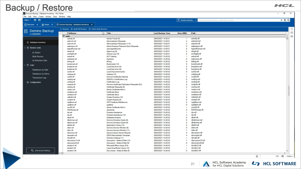 The Backup Solution also looks great, the whole backup and restore process can be controlled inside one new Domino Database. In a Demo, the restore process certainly looked fast and easy, Thomas restored some deleted Mails and Folders with ease.