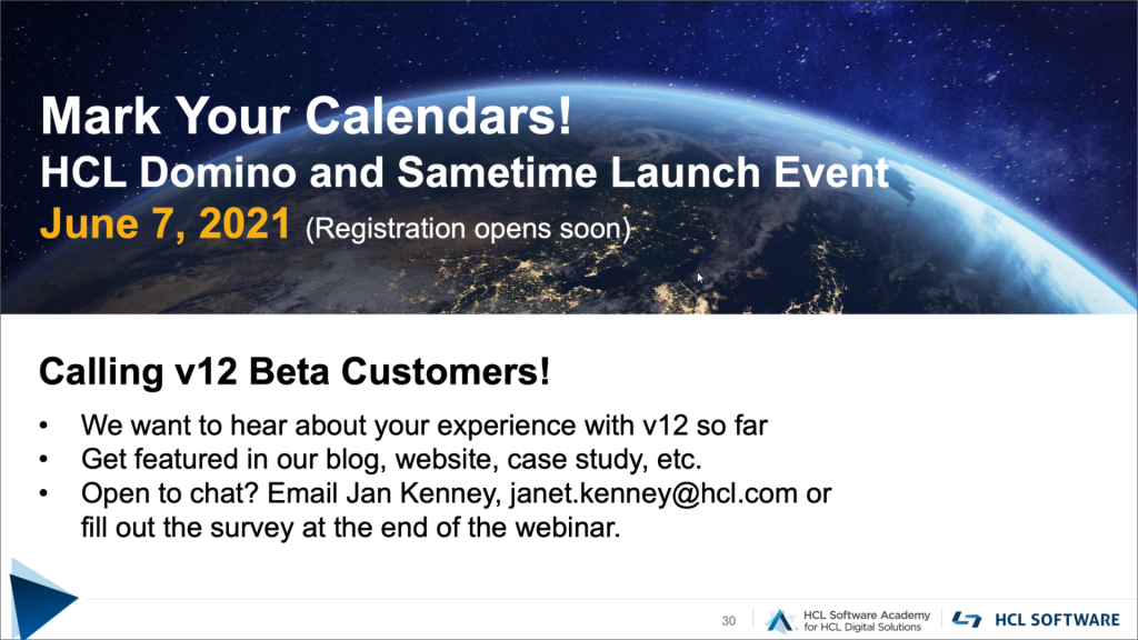 And last but not least, make space in your calendar for the HCL Domino and Sametime Launch Event on June the 7th.