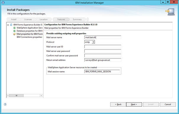 Enter the SMTP connection details and continue (you can change this after the Installation).