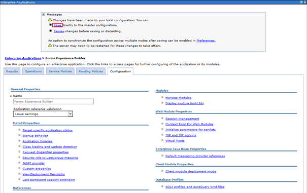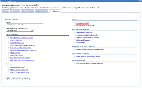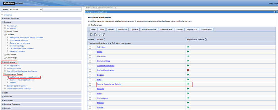 - Navigate to “Applications --> Application Types --> WebSphere enterprise applications --> Forms Experience Builder”.