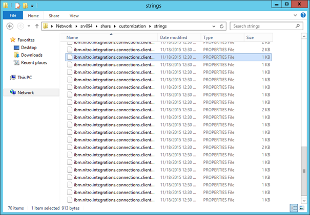 - Unpack the contents of “ibm.nitro.integrations.connections.client-8.5.1.028.zip” file, located under “<FormsExpereienceBuilder_installation_root>\deploy\widget” or in my case under “C:\IBM\FormsExperienceBuilder\deploy\widget”, to the “strings” folder in your “customization” directory.