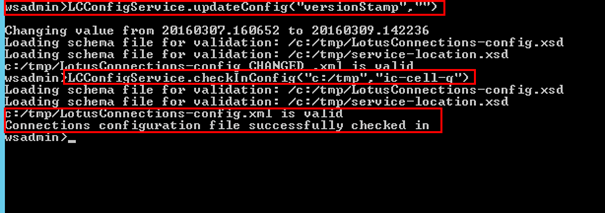 - Check out the “LotusConnections-config.xml” file with the following command: